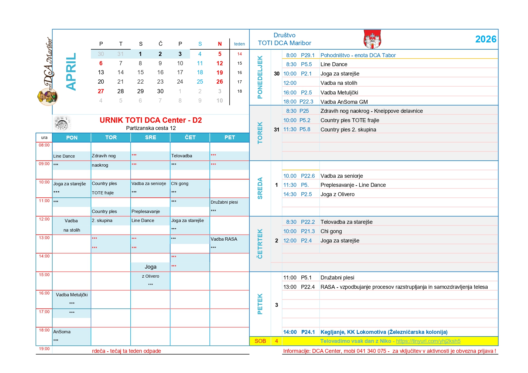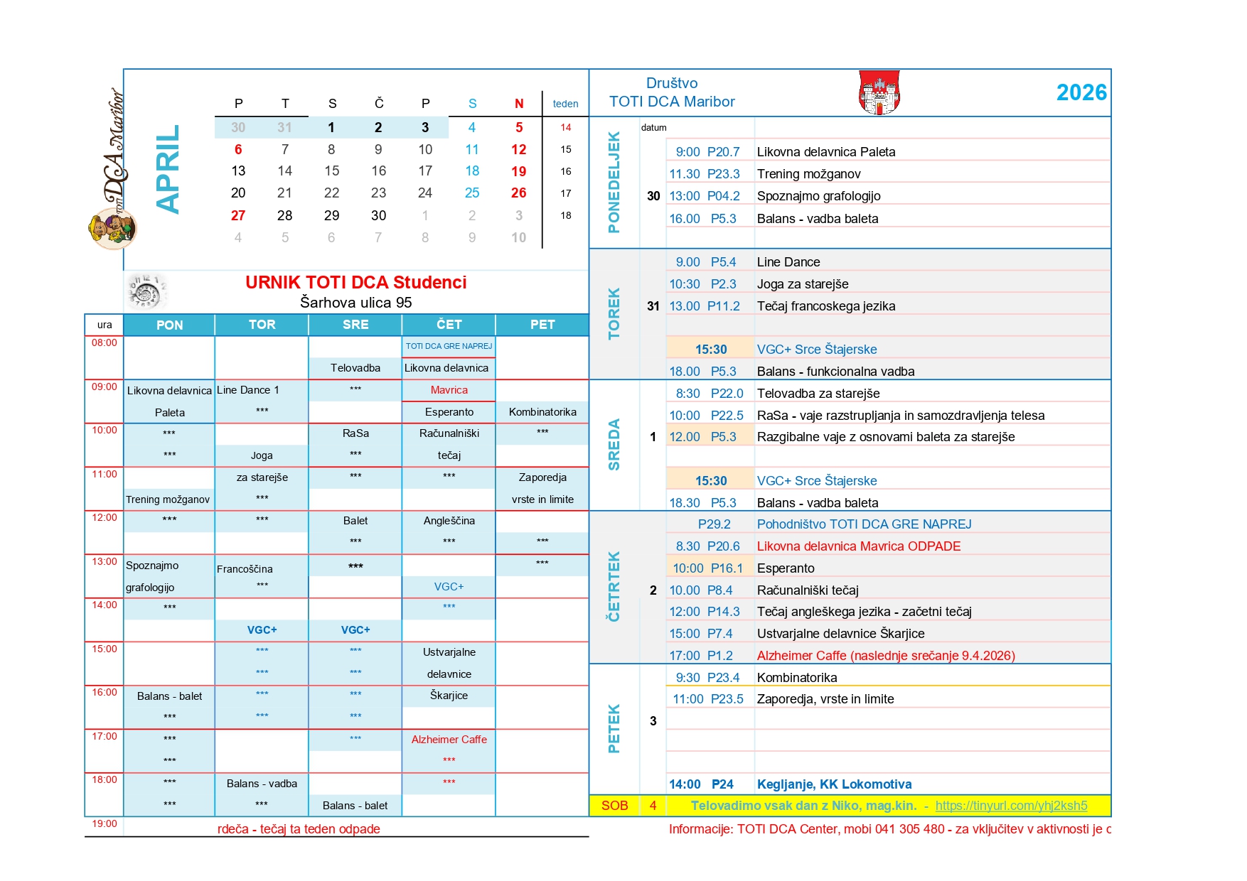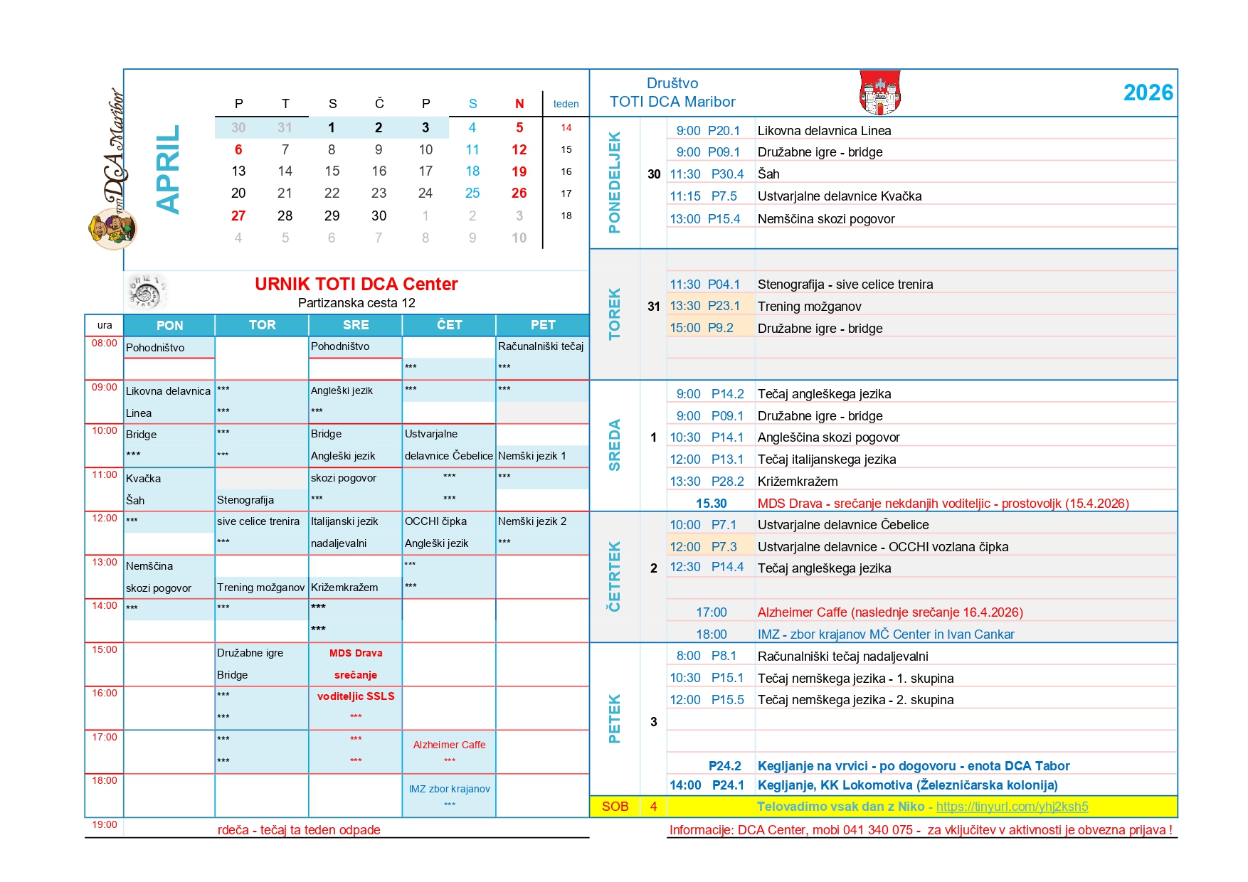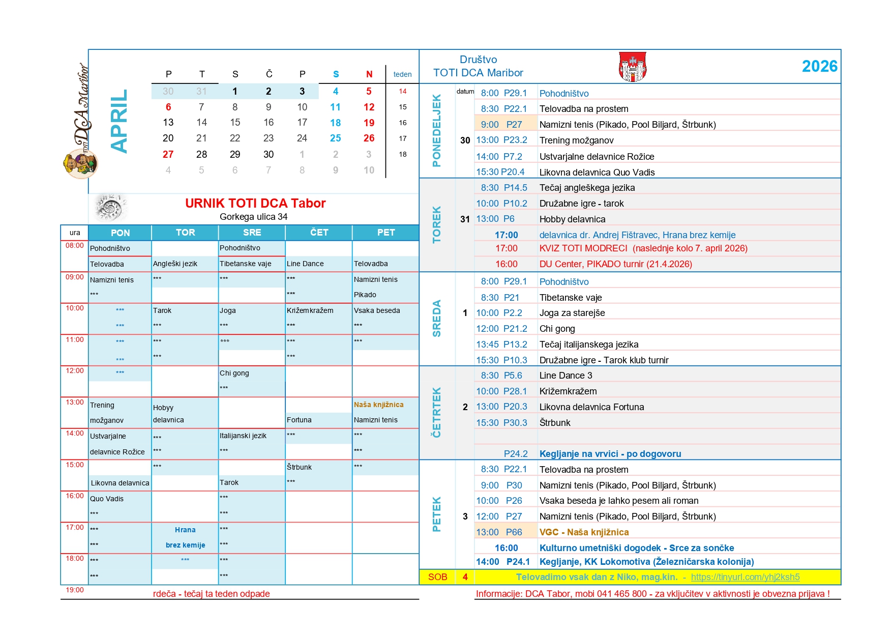Za ogled urnikov za vse tri enote pojdite s puščico naprej.